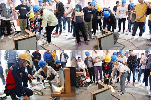 盛行防水职业手艺学院的防水技师邓连龙,,,,,,,实习生米清龙、谢道酉菇廖为同砚们举行实操解说,,,,,,,内容涵盖SBS、自粘、TPO等防水卷材施工工艺,,,,,,,同砚们学以致用,,,,,,,待解说竣事后纷纷踊跃实验。。。。。