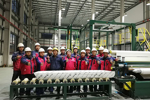 1月26日,,,,,,,,东方腾博888诚信为本官方网站莱西生产基地高分子车间再添喜讯。。。。。。继德国入口的Krauss Maffei Berstorff TPO防水卷材生产线顺遂投产半年后,,,,,,,,莱西生产基地新建热塑性聚烯烃复合生产线也试产乐成。。。。。。
