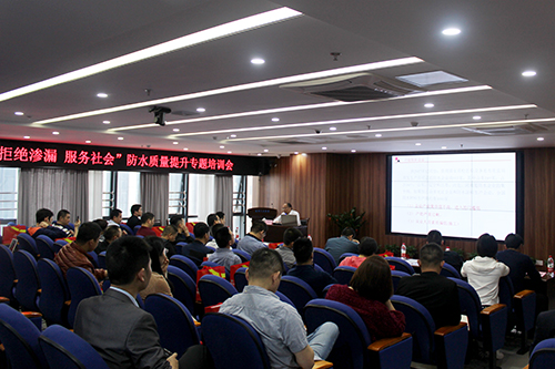 时代,,,,,东方腾博888诚信为本官方网站工程建材集团北方区总工程师许宁为与会职员举行培训解说,,,,,围绕目今防水行业现状,,,,,先容修建防水质料的特点及应用,,,,,深入剖析了福建地区修建工程渗漏水的缘故原由,,,,,并提出有针对性的治理要领及福建区域推荐使用的防水应用计划,,,,,同时呼吁与会职员要增强对防水知识的熟悉,,,,,将防水、节能、装配式作为修建工程的主要使命,,,,,提升修建质量,,,,,降低工程的渗漏率。。。。。