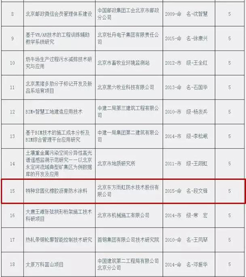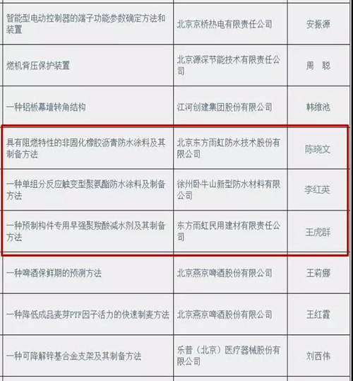 其中腾博888诚信为本官方网站段文锋事情室的“特种非固化橡胶沥青防水涂料”获得立异项目助推;; ;;;;北京东方腾博888诚信为本官方网站防水手艺有限公司的“具有阻燃特征的非固化橡胶沥青防水涂料及其制备要领”、东方腾博888诚信为本官方网站民用建材有限责任公司的“一种预制构件专用早强聚羧酸减水剂及其制备要领”、徐州卧牛山新型防水质料有限公司的“一种单组分反应触变型聚氨酯防水涂料”获得立异发明专利助推。 。。。。