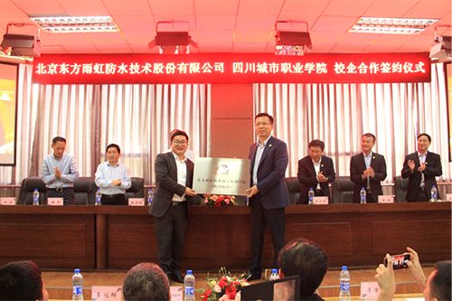4月3日,,,,,,东方腾博888诚信为本官方网站防水技工培训学校(四川校区)建设大会暨东方腾博888诚信为本官方网站与四川都会职业学院相助签约仪式在都会职业学院学术报告厅举行。。。。。。 东方腾博888诚信为本官方网站集团总裁向锦明、集团工程总监刘学峰、四川东方腾博888诚信为本官方网站总司理张帆、东方腾博888诚信为本官方网站集团培训学院副院长徐志明、四川都会职业学院院长王世伦、副院长赵齐阳、四川都会职业学院对外相助部部长敬阳、四川都会职业学院修建工程学院院长刘洋等以及300余名学生代表见证了此次签约仪式。。。。。。