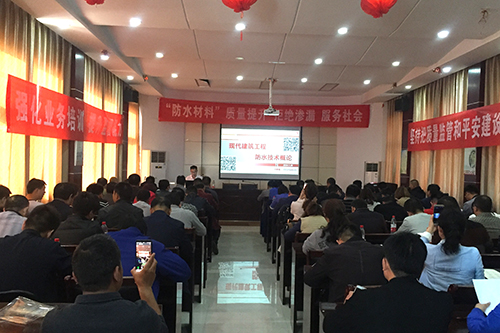 3月28日,,,,,,河南省济源市工程质量监视站举行“防水质料”质量提升交流大会,,,,,,来自质监站、质检站、设计单位、建设单位、监理单位和施工单位的一百二十余人加入了本次聚会。。。。。。东方腾博888诚信为本官方网站工渠事业部豫西省总司理朱鸿轶出席聚会,,,,,,郑州手艺副总工孙新磊作主题解说。。。。。。