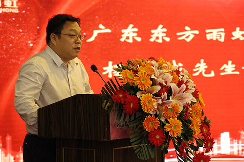 在全体职员奏唱国歌、司歌后,,,,,,广东东方腾博888诚信为本官方网站董事长杨浩成致辞。。。。。。。他对参会嘉宾、合资人、经销商的到来体现接待与谢谢,,,,,,并对2017年度东方腾博888诚信为本官方网站取得的优异效果作了简要汇报,,,,,,同时明确了公司2018年营业生长偏向,,,,,,坚定了参会职员对公司未来生长的信心。。。。。。。