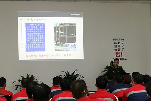 11月9日下昼, ,,,,,, ,芜湖卧牛山生产基地特邀芜湖市三山区消防大队照料长陈俊开展消防清静培训。。。。。。。。生产基地各生产车间、装备部、检测室及物资物流部共60余人加入此次清静培训。。。。。。。。