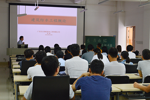 广东东方腾博888诚信为本官方网站总工办主任周敏从中国防水历史篇章入手,,,,,,通过我国修建防水历史、现代修建防水手艺、防水质料性能和防水设计与施工等四个板块举行讲述,,,,,,重点对现代修建防水质料解说,,,,,,让在场的先生和同砚们对防水专业知识有了更深条理的明确。。。。。。。。 在讲座的最后环节,,,,,,同砚们还踊跃地就不明确的部分举行了提问,,,,,,周敏逐一举行相识答。。。。。。。。