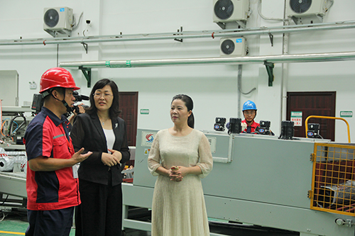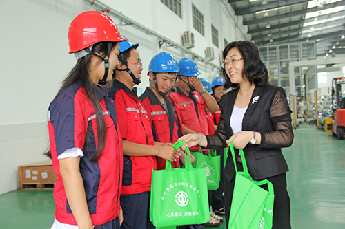 慰问团一行探望了徐州卧牛山卷材二车间的生产者,,,,,旅行了无胎改性沥青防水卷材的生产历程;;;;; ;接着,,,,,听取了厂长徐庭忠关于发放药品、配备冰柜、准时供应绿豆汤等防暑降温福利配发情形的详细报告 。。。。。