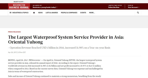东方腾博888诚信为本官方网站的市场体现都有着中国修建防水领域风向标的作用。。。。。4月21日 ,,,,,,东方腾博888诚信为本官方网站宣布2016年年报 ,,,,,,据报告显示 ,,,,,,2016年东方腾博888诚信为本官方网站实现营业总收入70亿元 ,,,,,,同比增添31.98%;; ;;;净利润10.29亿元 ,,,,,,同比增添40.97%。。。。。云云靓丽的效果简单经宣布 ,,,,,,受到了包括Yahoo!、Washington Business Journal、TheStreet、MarketWatch等200余家国际媒体的关注。。。。。