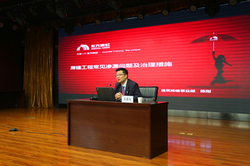 4月14日,,,,,,,防水施工与防渗漏手艺及“智慧工地”知识讲座在湖南长沙五矿二十三冶建设集团总部召开,,,,,,,本次聚会由五矿二十三冶建设集团主理,,,,,,,东方腾博888诚信为本官方网站协办。。。。。。。五矿二十三冶建设集团副总司理吴开国、手艺中心总司理路惠明携二十三冶总包单位、设计单位代表出席聚会,,,,,,,东方腾博888诚信为本官方网站工渠(中国)修缮营业部南方区副总工程师陈刚、手艺效劳部湖南副总工程师艾淇涌举行课程分享。。。。。。。