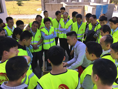 旅行事后 ,,,,,,,腾博888诚信为本官方网站手艺培训讲师周王喜就界面剂的使用 ,,,,,,,墙地面防水 ,,,,,,,阴阳角、管根等细部节点处置惩罚等内容对旅行组举行了详细的培训解说 ,,,,,,,并针对系统防水施工工法举行实操演示 ,,,,,,,从细部处置惩罚到大面涂刷逐一详细演示、解说。。。。。。。。随后 ,,,,,,,各人齐聚聚会室 ,,,,,,,腾博888诚信为本官方网站手艺培训讲师蒙日金就墙地面防水、界面剂、瓷砖薄贴法等腾博888诚信为本官方网站产品应用理论举行悉心解说。。。。。。。。