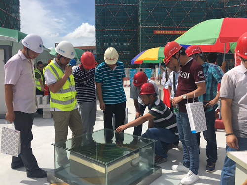 6月29日,,,,,,,,广州市南沙区2016年修建施工“清静生产月”现场观摩会在南沙区金茂湾三期工地举行。 。。。。 。广东东方腾博888诚信为本官方网站作为优质防水系统效劳商,,,,,,,,也受邀加入此次观摩会,,,,,,,,并现场展示了较为焦点的防水系统。 。。。。 。   本次现场观摩运动以“强化清静生长看法  提升全民清静素质”为主题,,,,,,,,以树立清静生长看法,,,,,,,,提升从业职员清静素质,,,,,,,,维护修建施工清静生产平稳时势为目的,,,,,,,,约请了南沙区建设系统、南沙区质监系统及各大施工单位相关向导与职员约四百余人到现场旅行。 。。。。 。中国金茂控股集团与中建二局第三修建工程有限公司皆十分重视防水工程,,,,,,,,基于三方一直以来的优异相助和东方腾博888诚信为本官方网站高质量的工程体现,,,,,,,,特邀广东东方腾博888诚信为本官方网站在观摩会现场举行防水系统的展示。 。。。。 。