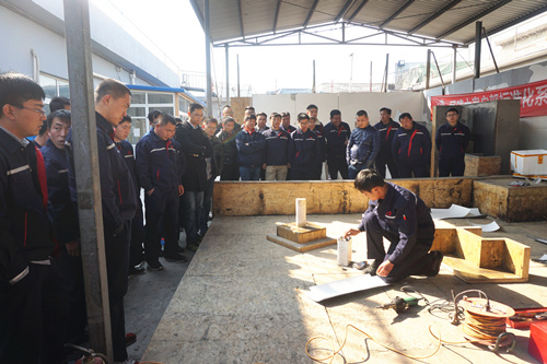 下昼,,,,,《单程防水卷材屋面工程手艺规程》及《TPO事业部施工流程梳理及质料治理》的宣贯,,,,,让与会职员明确掌握了工程手艺及施工历程中的规章制度,,,,,项目司理组和工人代表组也就项目治理的履历与施工手艺作了分享,,,,,新同事们如获至宝,,,,,现场提问、讨论同步举行。。。。。。。。 颁奖环节,,,,,现场为TPO事业部优异项目司理王海东、崔岩,,,,,优异施工班组张广志,,,,,优异施工员李冰,,,,,优异新人钟鱼,,,,,优异施工队长高明坤等人揭晓奖励及证书。。。。。。。。 本次培训还组织TPO细部节点实操大赛,,,,,由2015中国屋面防水巨匠徐龙潇现场演示阴阳角和管根的标准化施工实操及解说。。。。。。。。TPO事业部的所有施工治理职员及班组组长全神贯注寓目,,,,,字斟句酌的施工工法引来阵阵赞叹。。。。。。。。